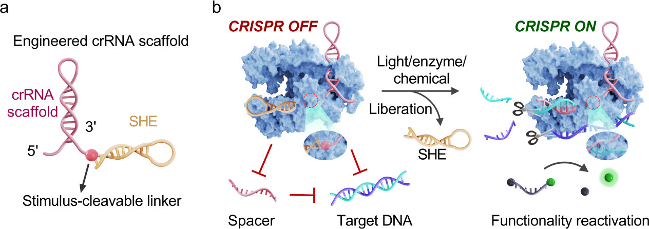CRISPR-Cas系统作为近年来新兴的前沿生命科学技术,已经在基因编辑、生物成像和体外诊断等多个领域展现出巨大的应用潜力,并得到了广泛的关注和应用。然而,该系统在执行识别和切割事件时缺乏对特定时间和空间的精准控制能力,这一局限性在很大程度上削弱了其在生物技术应用中的准确性和效率。尽管目前在CRISPR系统活性调控方面已经取得了一些进展,但开发能够适应多种刺激响应的CRISPR模块化调控平台仍然是一个极具挑战性的难题。
