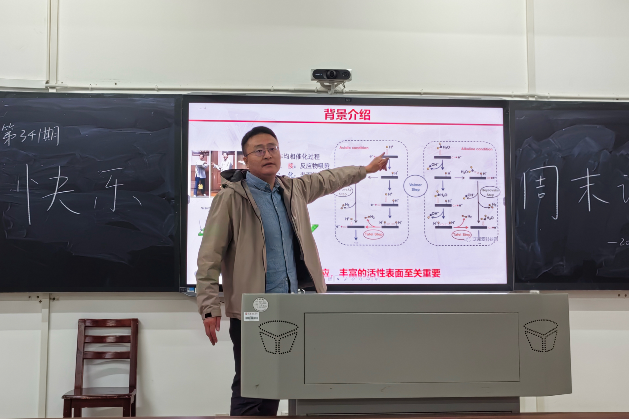 活动伊始,杨静简单介绍了自己的教育与工作经历。通过对催化剂的历史背景介绍,杨静讲解了几位化学家的相关研究成果,再介绍了中国催化剂之父——闵恩泽。杨静就目前的能源紧缺问题,指出关键能源转化的高性能化制备至关重要。以氢能为例,杨静讲解了三种常用制氢方法:蒸汽甲烷转化、水煤气反应以及电/光解水,并比较了三种方法的优缺点。在科研相关成果这一环节中,杨静向同学们讲解了气凝胶的概念以及特点,包括比表面积大,孔隙率高,热导率低和密度低等等。在“双碳”目标的引领下,气凝胶被列入“国家重点节能低碳技术”和“战略性新兴产业”。活动的最后,杨静介绍了自己的研究进展,并指出目前催化剂研究方面存在的问题与不足,如铂基纳米催化剂面临易脱落、团聚、毒化等问题,呼吁同学们可以多多了解一些科研方面的知识,也欢迎同学们与自己交流。