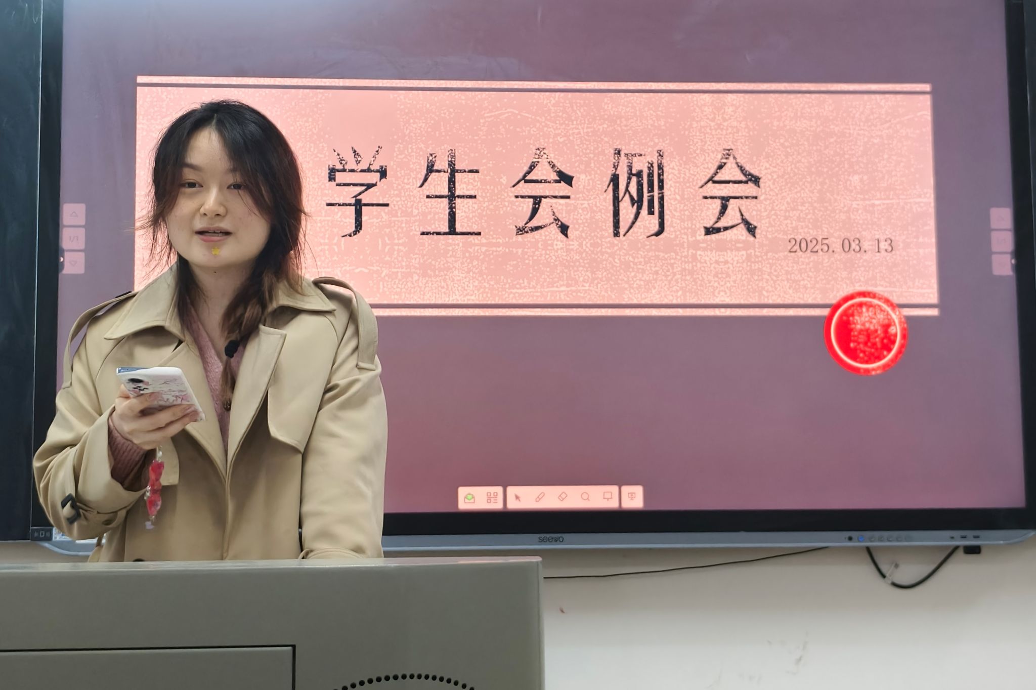 会议伊始,各部门依次汇报近期的工作情况以及未来的工作计划。其中办公室已完成学生会主要干部学习情况的材料收集,以及第346期快乐周末谈的准备工作;健服部正在进行健美操人员的训练和校结核病宣传周相关活动通知的发布;权益部已完成权益知识抢答赛观众的招募和实验室安全竞赛奖品发放;文体部已完成万山红遍艺术作品的提交;学发部已完成自习打卡活动的预热通知;宣传部已完成多篇说说和微推的制作。主席团成员朱茜雨提醒学生会所有成员重视学习成绩,如有学习方面的困难,可向学长学姐寻求帮助。