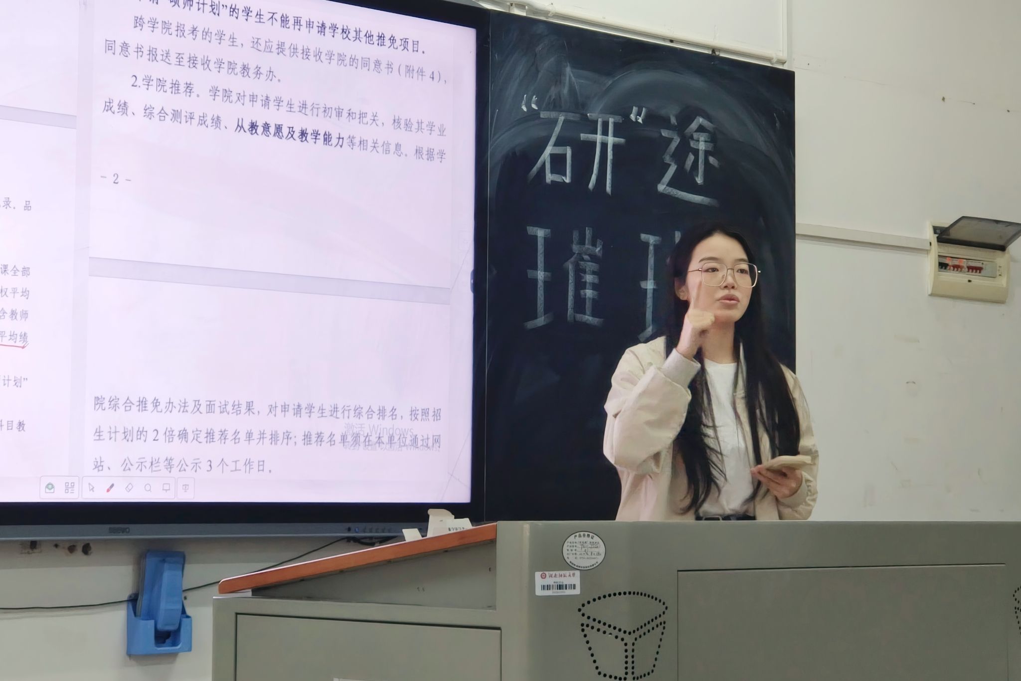 此次讲座为同学们提供了一个了解卓越教师计划和硕师计划保研的平台,让大家对保研政策和途径有了更清晰的认识,也助力大家在未来保研之路上能更加从容自信地前进。