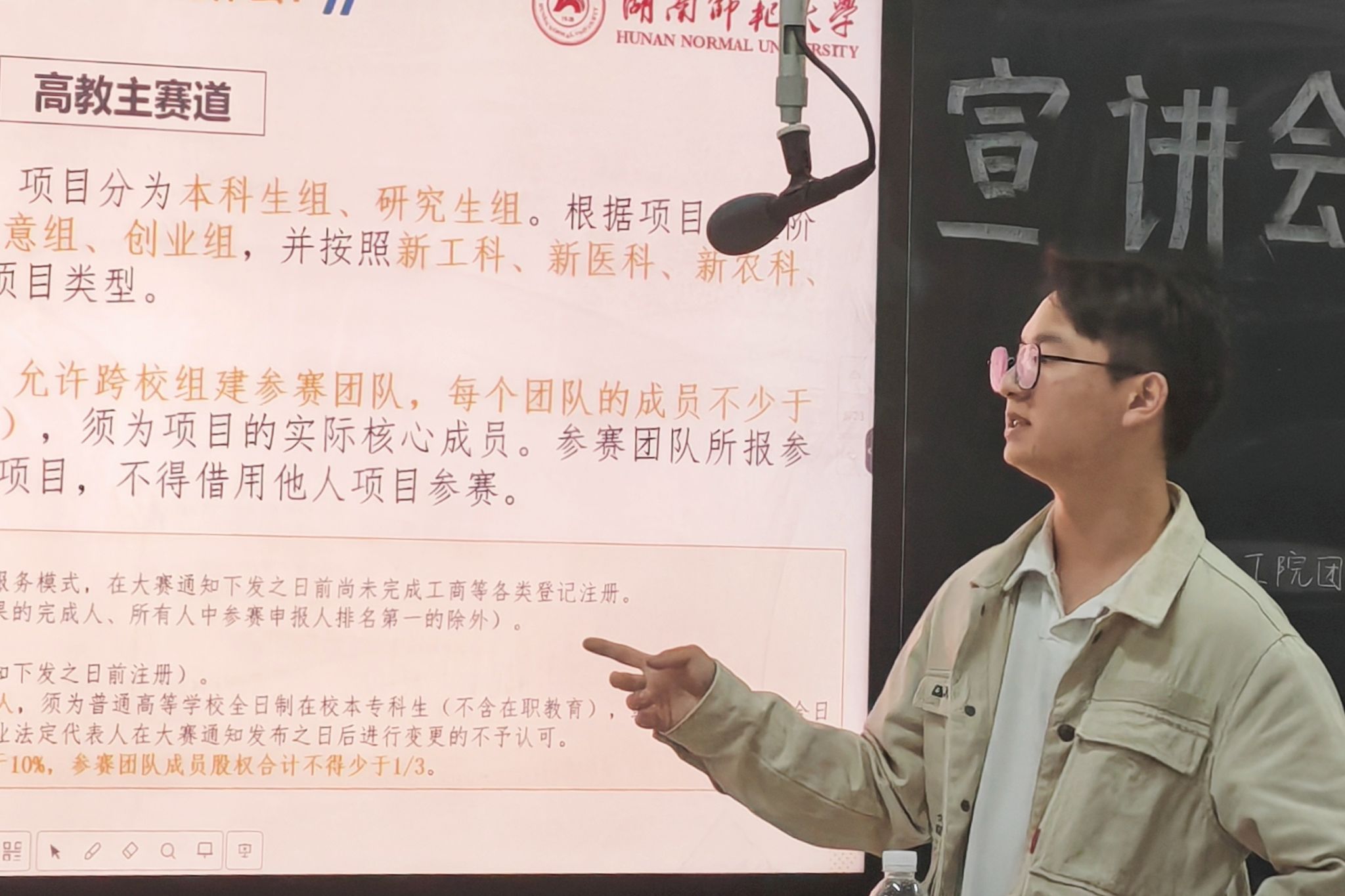 (通讯员 樊思乐 熊志惠)3月24日下午,化工院团委青年创新创业部在化工院217教室举办2025年全国国际大学生创新大赛(原“互联网+”大赛)宣讲会。此次宣讲会由旅游学院2022级本科生杨於道担任主讲人,青年创新创业部干事陈柳蓉担任主持人,2022级、2023级及2024级部分同学参加此次活动。