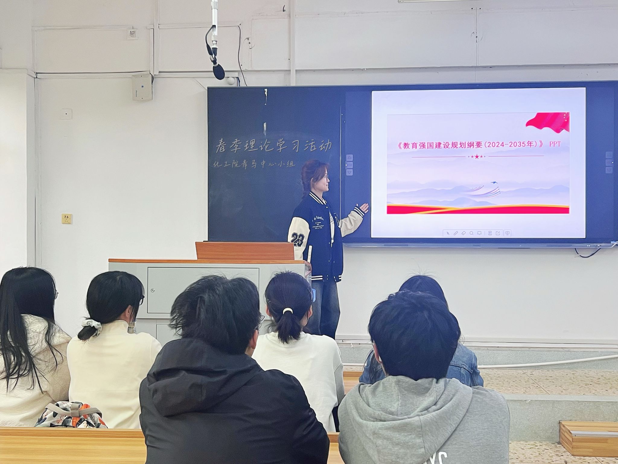 (通讯员 陶韩)为深入学习贯彻《教育强国建设规划纲要(2024 - 2035 年)》精神,引导青年学生深刻领悟教育在国家发展中的关键作用,化工院青马中心小组开展“教筑强国业,育见栋梁材”主题春季理论学习活动,活动由组长盖欣然主持,全体组员参与。