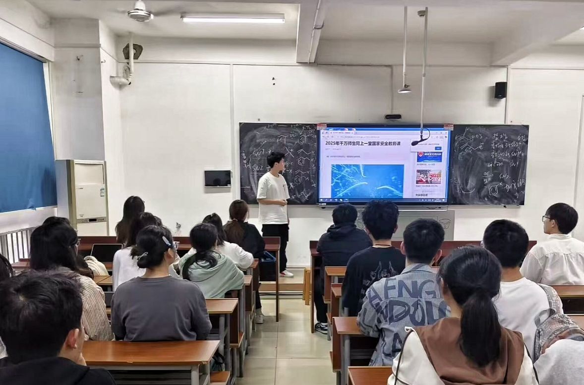 活动开展前,学生会学业发展部拟定并下发相关通知。活动期间,学生会学业发展部组织各班级开展以国家安全教育为主题的班会以及“千万师生同上一堂国家安全教育课”观影活动。主题班会采取线下和线上同步的形式,向同学们普及国家安全教育知识,提升同学们维护国家安全的能力和水平。观影活动的开展,增强学生安全意识和法治观念。