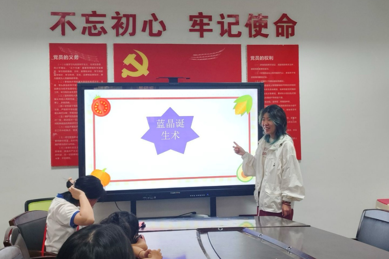 此次活动由负责人周丽君统筹规划,并在QQ群及空间说说发送活动预告,理事会其他成员协助活动正常进行。活动中,徐一珊向小朋友们讲解PPT并演示实验过程,确保了实验的安全性与步骤的准确性。小朋友们在会员的指导下,将泡有紫甘蓝的热水分别倒入食盐水、小苏打溶液、氢氧化钠溶液和白醋中,溶液变成不同的颜色。在蓝晶诞生术实验中,会员们和小朋友将硫酸铜溶液滴入氢氧化钠溶液中,生成了美丽的蓝色氢氧化铜沉淀。