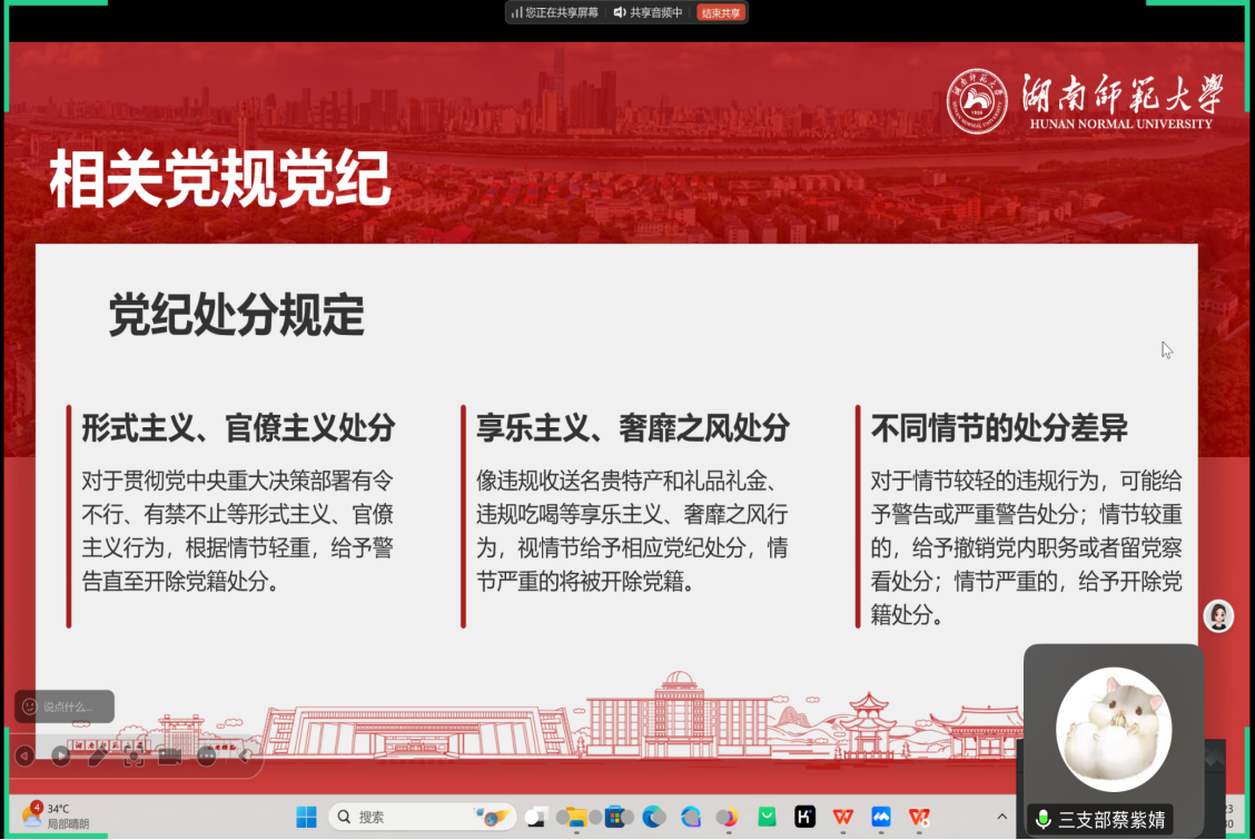 蔡紫婧讲解相关党规党纪