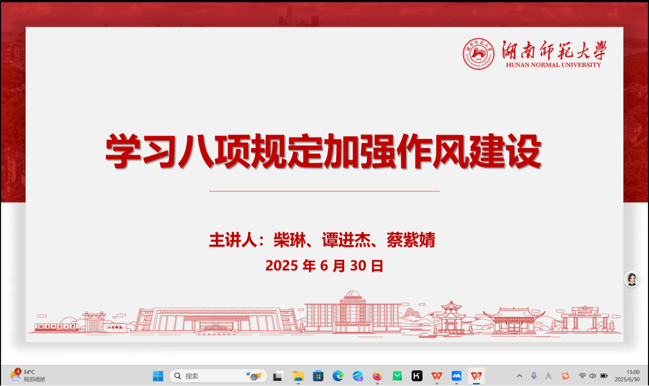 (通讯员 罗佳铭)为深入贯彻中央八项规定精神学习教育,进一步加强学生党员的思想与作风建设,6月30日下午,学院本科生党支部以线上会议的形式开展了“学习八项规定,加强作风建设”主题党课活动,学院党委书记谭东波出席活动并讲话,活动由本科生第一党支部党员柴琳主持。