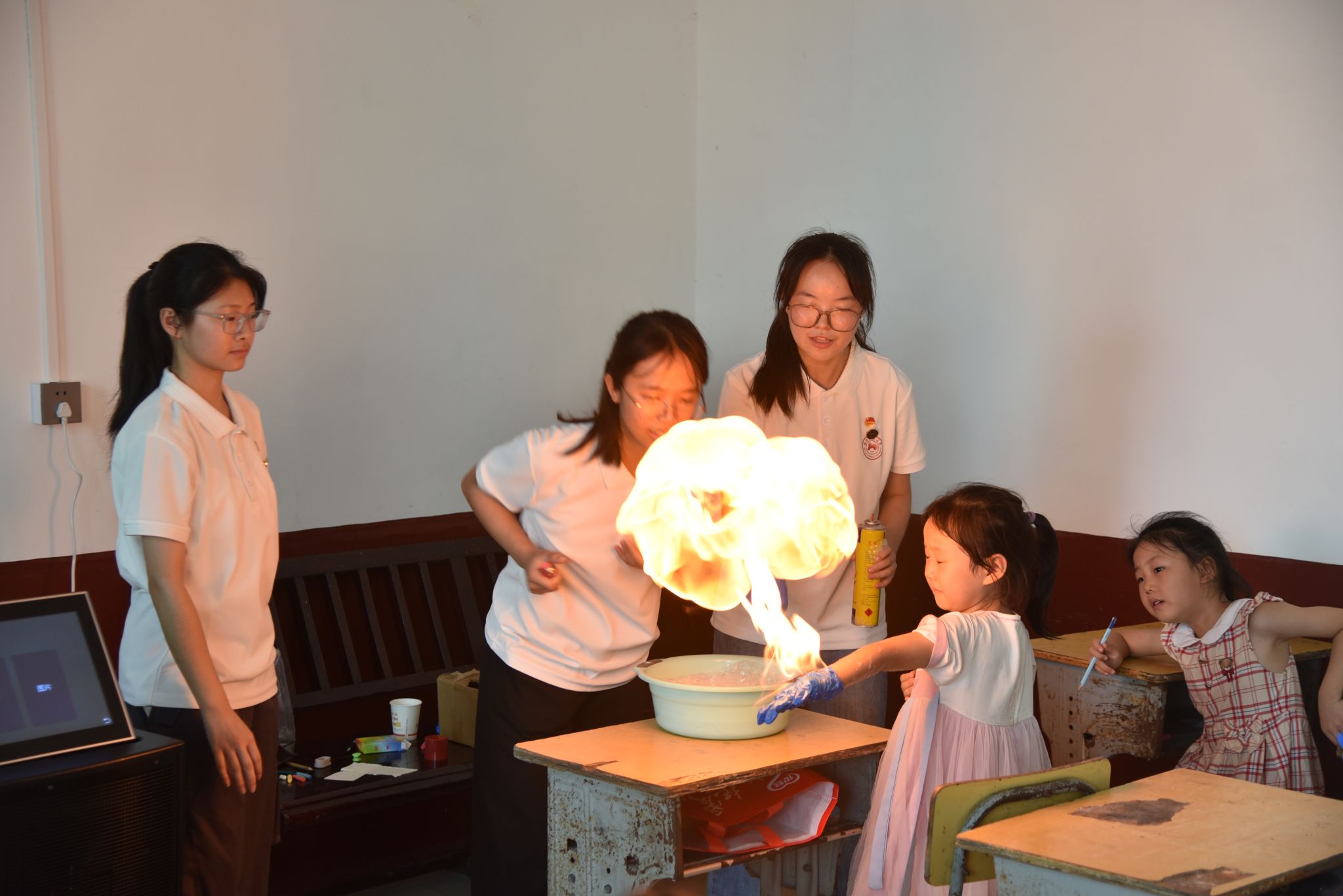 此次课程刘萱雅、黄婉晶以“火焰魔法“为切入点,用神奇的化学实验,为孩子们打开了探索化学世界的大门。