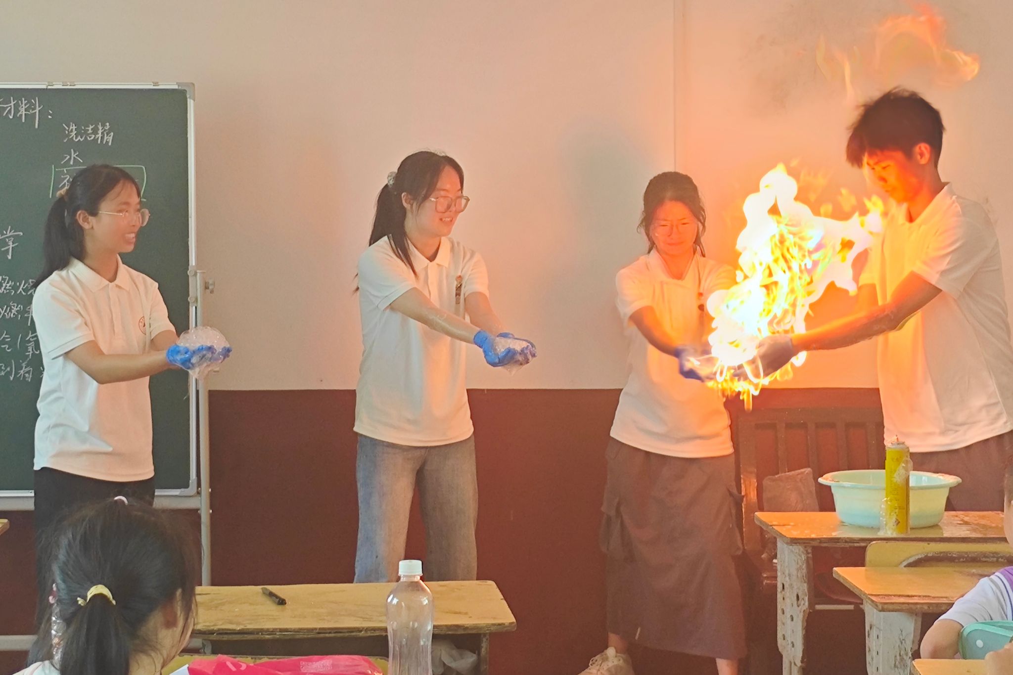 (通讯员 饶峭榕 王霄扬)为激发乡村孩童对化学的浓厚兴趣,培养其基础化学实验素养,7月7日下午,化工院“麓山青年”团队围绕“走进奇妙的化学世界”的主题,开展趣味化学实验课程。此次课程由教学组组长刘萱雅,教学组组员黄婉晶主讲,另有几名助教协助活动开展。