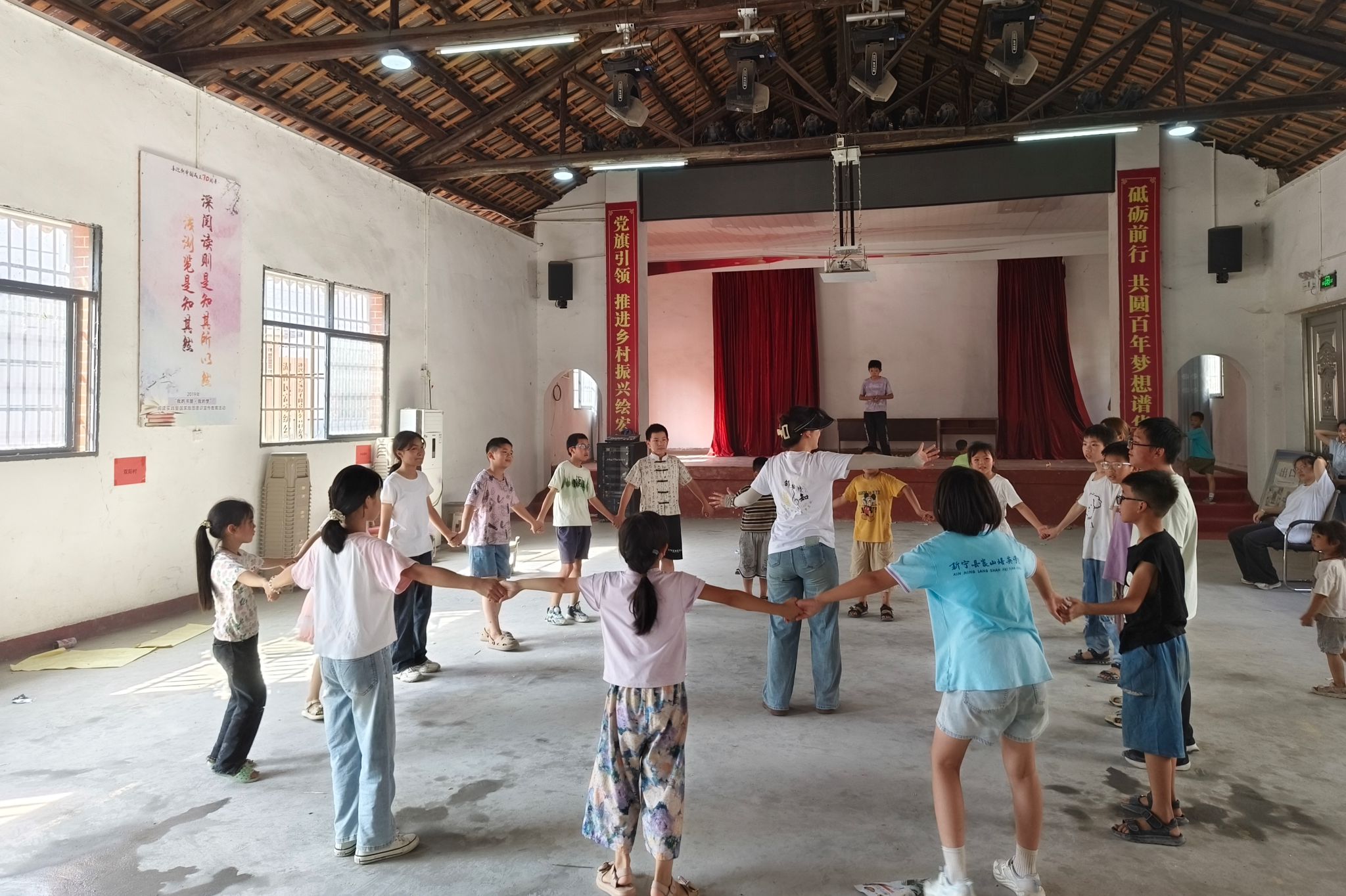 (通讯员 樊思乐)为提高学生身体素质,丰富学生课余生活,促进学生之间的交流,7月16日下午,”邵韵传知“——yl34511线路中心赴邵阳市新宁县暑期社会实践团在邵阳市新宁县水庙镇村支部大礼堂内开展了一场趣味运动会,50余名中小学生参加此次运动会。