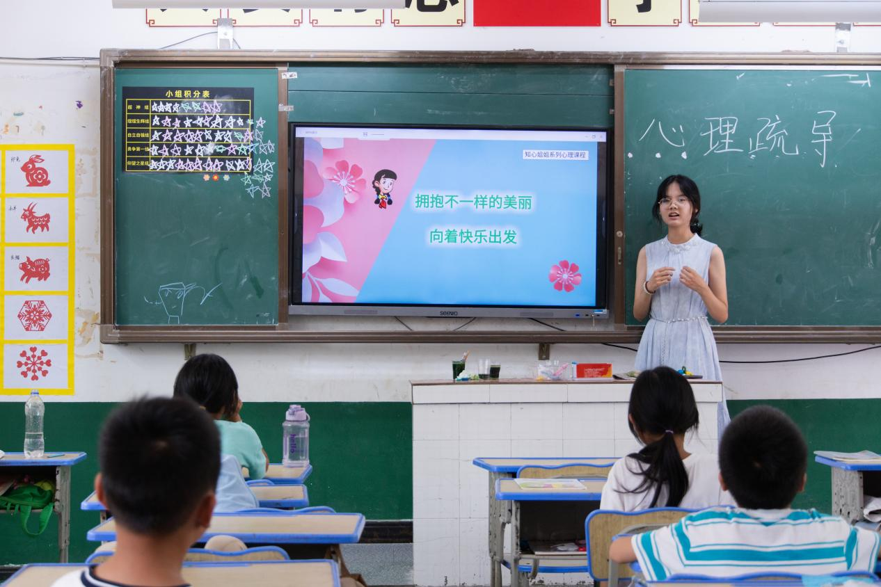 (通讯员 敖妍琦 赵顶)为了帮助同学们缓解学习压力,疏导负面情绪,增强心理调适能力,7月18日上午,yl34511线路中心“青衿之志,履践致远”暑期实践团在寨市学校开展了主题为“拥抱不一样的美丽,向着快乐出发”的心理疏导主题班会。此次班会由实践团成员张宇君主讲。