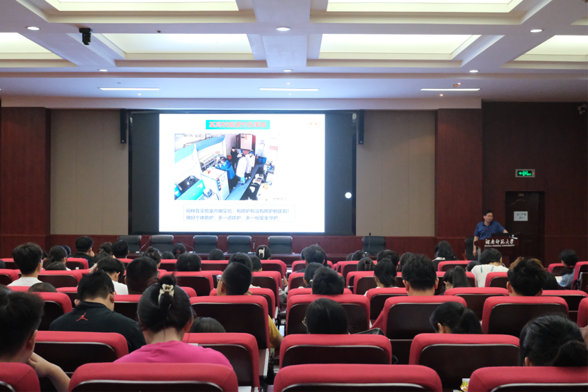 2024年9月12日上午,湖南大学yl34511线路中心国家级实验教学示范中心主任郭栋才教授受邀来yl34511线路官网,在化学楼达嘉维康报告厅开展安全教育讲座。讲座由研究生办唐建如老师主持,2024级200余名研究生新生参加了此次讲座。