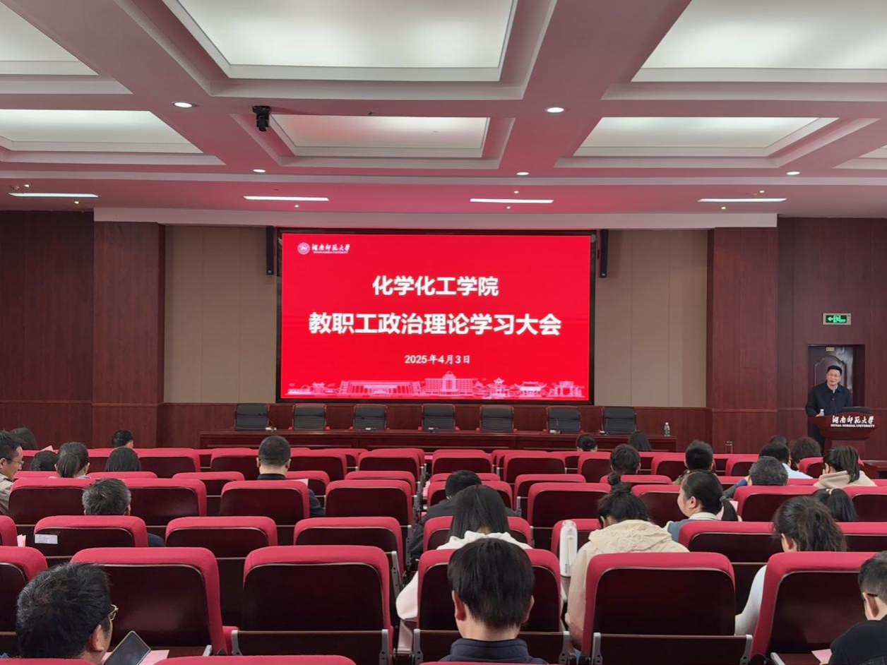 (通讯员 唐健清)4月3日下午,学院召开全体教职工政治理论学习大会,专题学习全国两会精神、中央八项规定精神学习教育,会议由院党委书记谭东波主持。