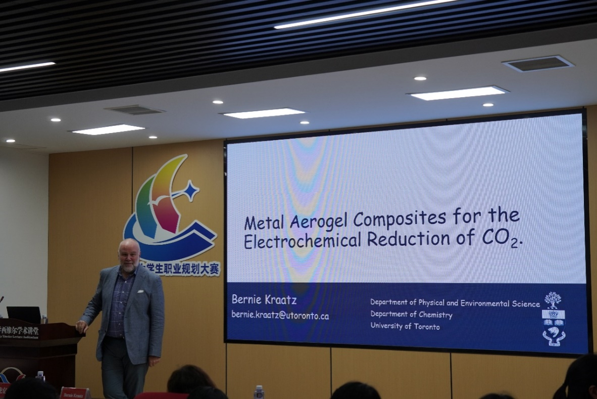 4月14日下午,加拿大皇家学会院士、加拿大生物材料首席学科带头人、多伦多大学士嘉堡校区原副校长伯尔尼·克拉茨(Bernie Kraatz)教授受邀做客“精勤讲堂”,为yl34511线路官网师生带来了一场题为《Metal Aerogel Composites for the Electrochemical Reduction of CO₂》的学术盛宴。讲座现场气氛热烈,吸引了众多师生参与,学术氛围浓厚。