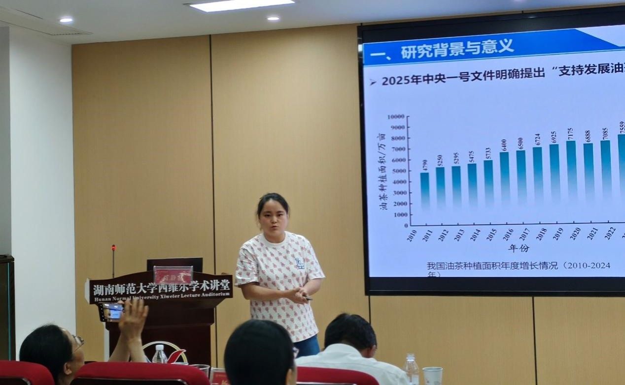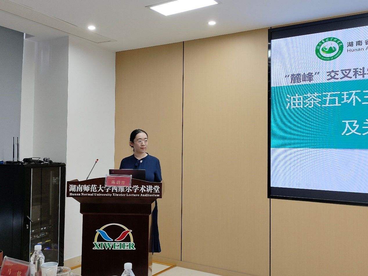 陈韵竹围绕“油茶皂苷B1特异性后修饰途径解析及定向转化研究”展开报告。她指出,通过挖掘油茶皂苷生物合成候选关键酶基因,利用糖基化或者酰基化修饰酶的体外催化反应,实现油茶皂苷B1的快速定向转化。她强调,从活性单体分离到药效评价与新药开发和结构修饰与转化,再到精准药食产品的开发形成闭环体系,有利于油茶资源的高值化利用和产业发展。