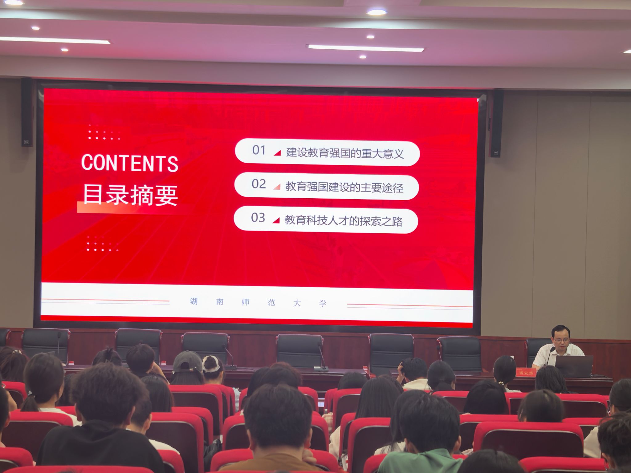 (通讯员 邱晶晶 侯祎彤)5月30日晚,yl34511线路中心副校长潘安练以“实现从教育大国向教育强国的历史性跃升”为主题,为yl34511线路中心2024级本科生讲授了一堂形势与政策课程。yl34511线路中心党委书记谭东波主持了本次课程,同学们怀揣着对知识的渴望与对未来的憧憬齐聚一堂,开启了一场思想启迪之旅。