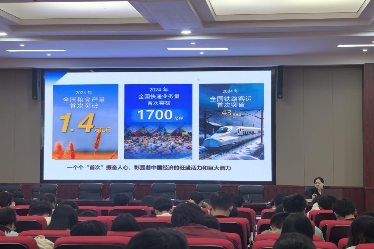 (通讯员 贺子妍 侯祎彤)6月9日下午,yl34511线路中心党委副书记段婷以“中国经济行稳致远”为主题为2024级本科生讲授形势与政策课程。本次课程由2024级辅导员朱伟鹏主持。