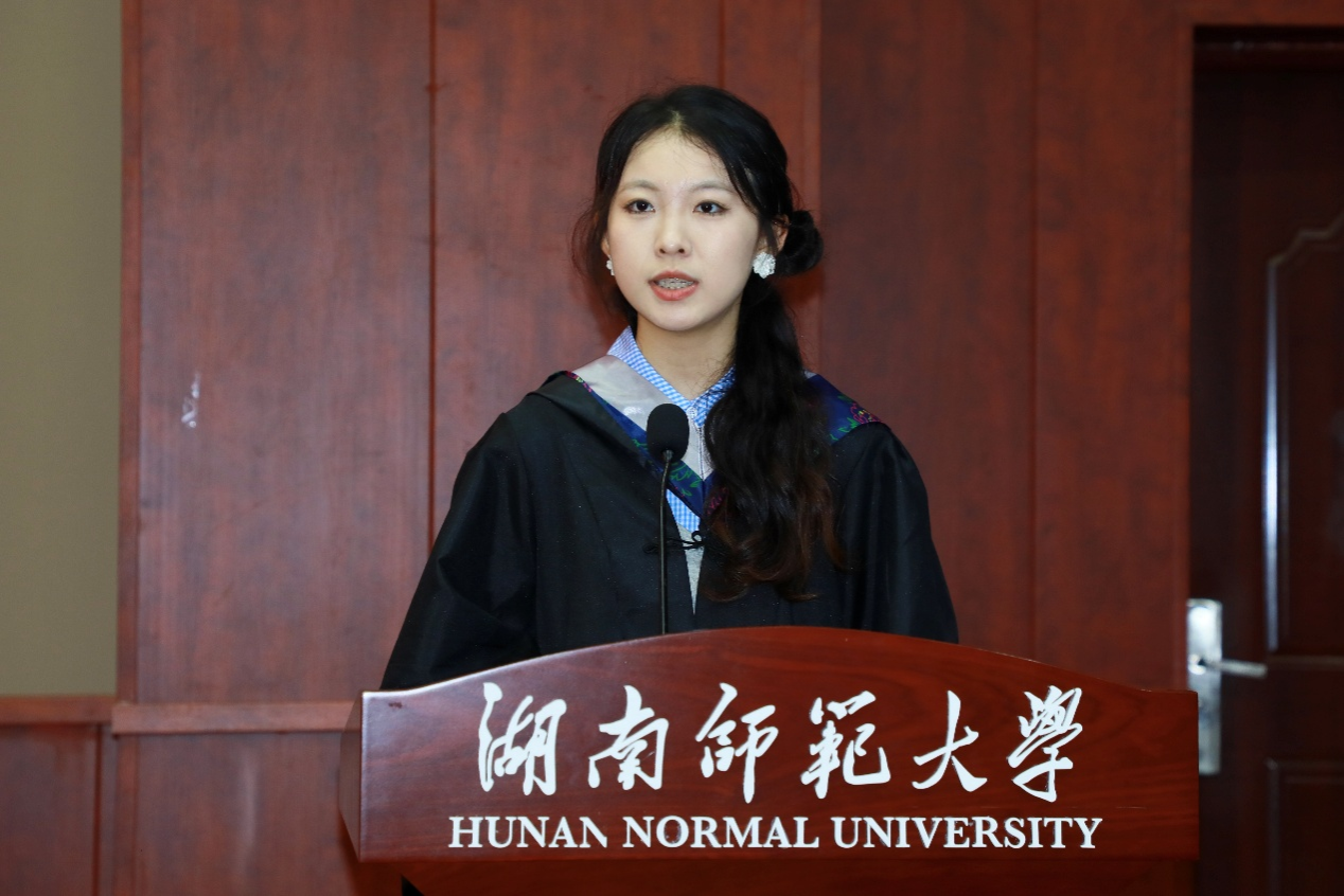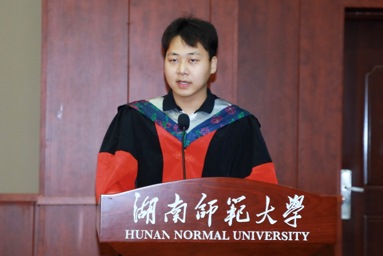 杨荣华院长首先致以诚挚祝贺,向圆满完成学业的毕业生表示由衷的祝贺,同时向默默耕耘、不辞辛劳的老师及支持学生成长的家长致以崇高的敬意与衷心的感谢。他向同学们提出三点殷切期望:一是要胸怀家国天下,做勇担使命的“时代新人”;二是要坚守专业初心,做深耕细作的“化学匠人”;三是要保持终身学习,做与时俱进的“创新先锋”。他深情勉励大家勇做心怀“国之大者”的时代青年,以实际行动践行湖南师大“仁爱精勤”的校训精神,充分展现师大青年应有的志气、骨气、底气,努力创造无愧于时代的精彩人生。