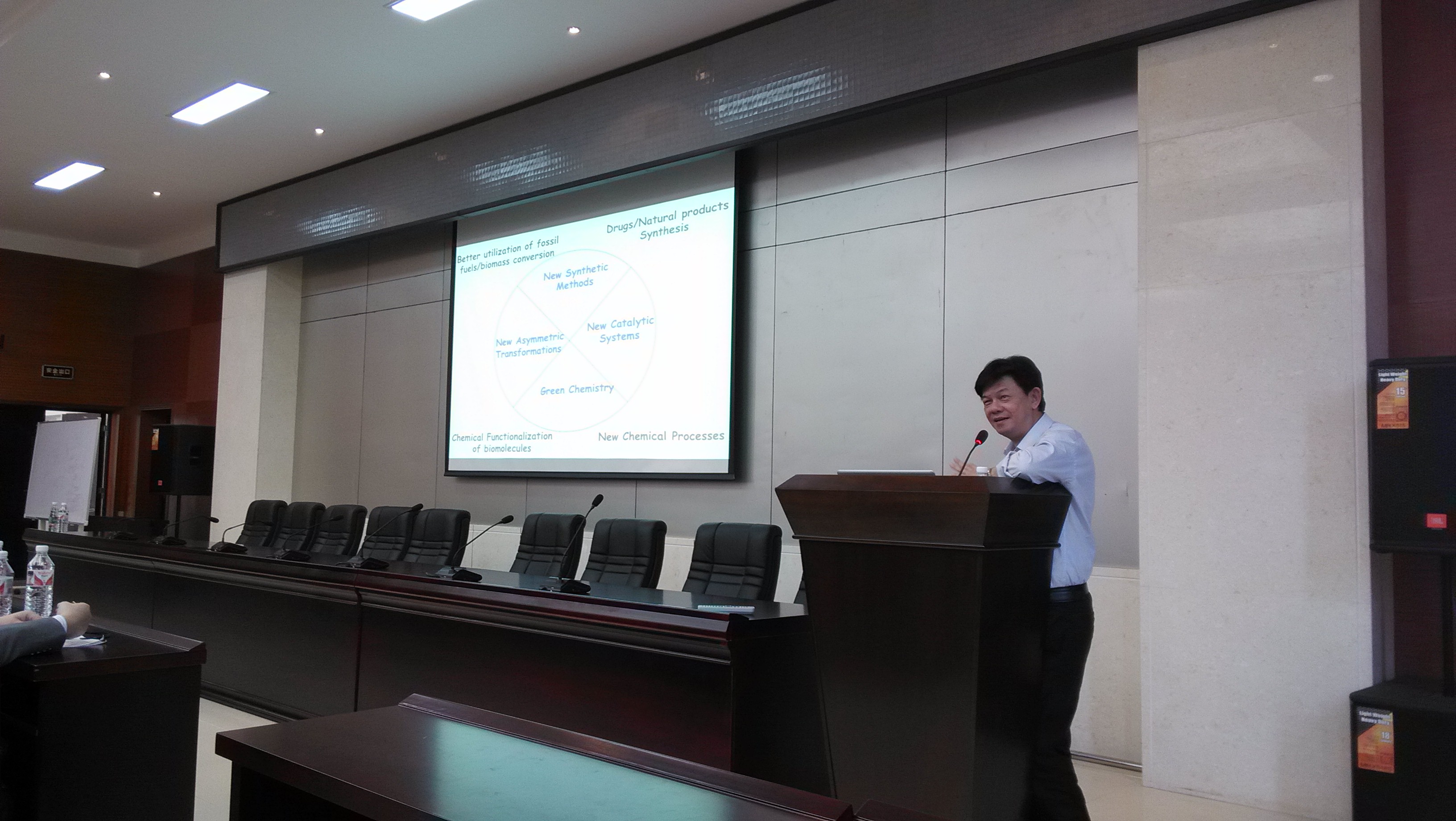 9月28日,应yl34511线路中心化工学院、化学生物学及中药分析教育部重点实验室的邀请,马来西亚科学院院士、新加波南洋理工大学理学院副院长、中组部“高级专家”入选者、中国科学技术大学教授罗德平(Teck-PengLoh)在yl34511线路中心新化工楼为化工院做了一场关于“天然产物合成启发的有机合成新方法学的研究”的报告。