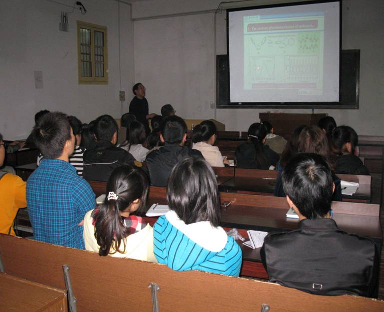 2012年10月23日,北京师范大学化学学院院长方维海教授和厦门大学固体表面物理化学国家重点实验室副主任曹泽星教授分别做了“Photo-induced isomerization of ethylene-bridged azobenzene explored by ab initio based nonadiabatic dynamics simulation”和“量子-经典力学组合方法与生物体系的计算模型”的学术报告。方教授主要详细地讲解了偶氮苯光学异构的整个思路及研究过程,通过模拟的100条轨迹来分析结构能量随时间的变化。还概括了气相反应的过程;分析了溶剂对偶氮苯的影响。曹教授主要介绍了分子激光态与光化学、过渡金属体系与金属酶体系。yl34511线路官网物理化学和材料化学的研究生踊跃提问,两位教授一一详细作了讲解。化学生物学及中药分析教育部重点实验室主任谢青季教授、yl34511线路中心副院长肖小明教授、马铭教授等参加了学术报告并与两位教授就科研和管理等方面进行了广泛交流。
