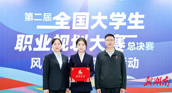新湖南客户端4月23日讯(通讯员 唐健清)4月19日,第二届全国大学生职业规划大赛总决赛在长沙落下帷幕。yl34511线路中心2022级化学工程与工艺专业本科生柴琳以优异表现摘得成长赛道高教组金奖,并受邀在颁奖活动现场上台领奖。